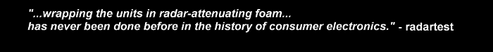 Sorry to disappoint, but the foam doesn't look all that evil. Eccosorb is specially-designed foam which absorbs radar. In this test, the Guys of LIDAR used layers of Eccosorb in front of the radar units to reduce the radar signal, or make it weaker. Why? Because a detector's job is to sniff out weak signals. The further away you are from the radar, the weaker the signal becomes. Today's high-end radar detectors can detect radar miles and miles away in the right situations. Because of this, radar detector tests commonly use hills, terrain, or other means to reduce the radar signal for test purposes. But every test situation is different, and these methods can sometimes yield sporadic results. And for this test, we needed conditions where the angle of the radar vs the detector could be precisely controlled. Enter Eccosorb. The Eccosorb allowed us to reduce the radar signal in a highly-controlled manner, and allowed us to test on a straight course where the angles could be precisely controlled. This method of testing also reduced or eliminated some of the unpredictability that occurs with other methods, and yielded highly-repeatable results. In addition to the Eccosorb in front of the radar, the sides and rear were also surrounded with Eccosorb just for good measure to help prevent any stray radar reflections. Please remember: what these test results provide is an indication of "relative sensitivity", or how the detectors might compare against themselves or each other. Just like any other radar detector test (foam or not), the absolute distances in the results cannot be applied to any situation other than the specific test conditions. In this test, just like any other, it's the ratios that matter. We tested the detectors by exposing each one to a specific set of controlled conditions.